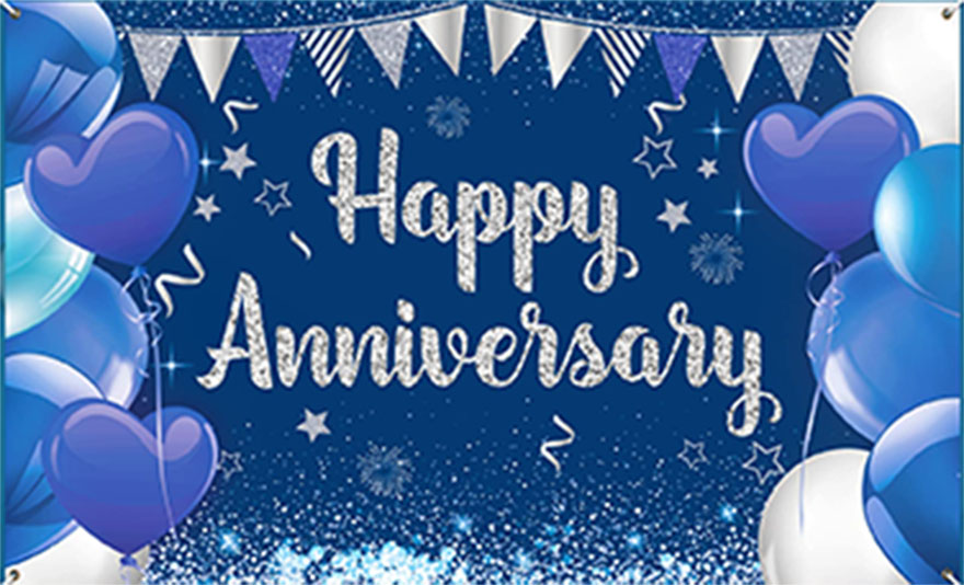 Happy Anniversary Combo Includes: 1 PCS Happy Anniversary Black Banner + 20 PCS HD Metallic Balloon ( 10 PCS Blue & 10 PCS Silver ) + 3 PCS Silver Star Foil Balloon (5 Inch) + 1 PCS Silver Moon Foil Balloon + 1PCS Foil Curtain Blue .