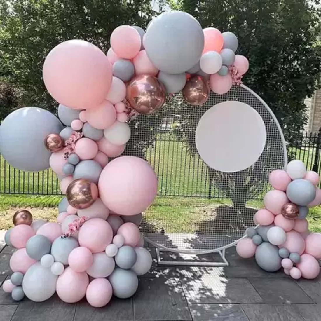 Balloons Graland : 20 PCS Pastel Pink Balloons + 20 PCS Pastel White Balloons + 5 PCS Silver Chrome + 5 PCS Rose Gold Chrome + 1 PCS Heart Foil Rose Gold + 1 PCS Silver Foil Star + 2 PCS Rose Gold Round Foil + 1 PCS Arch